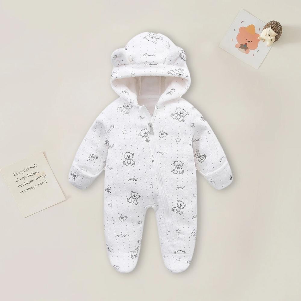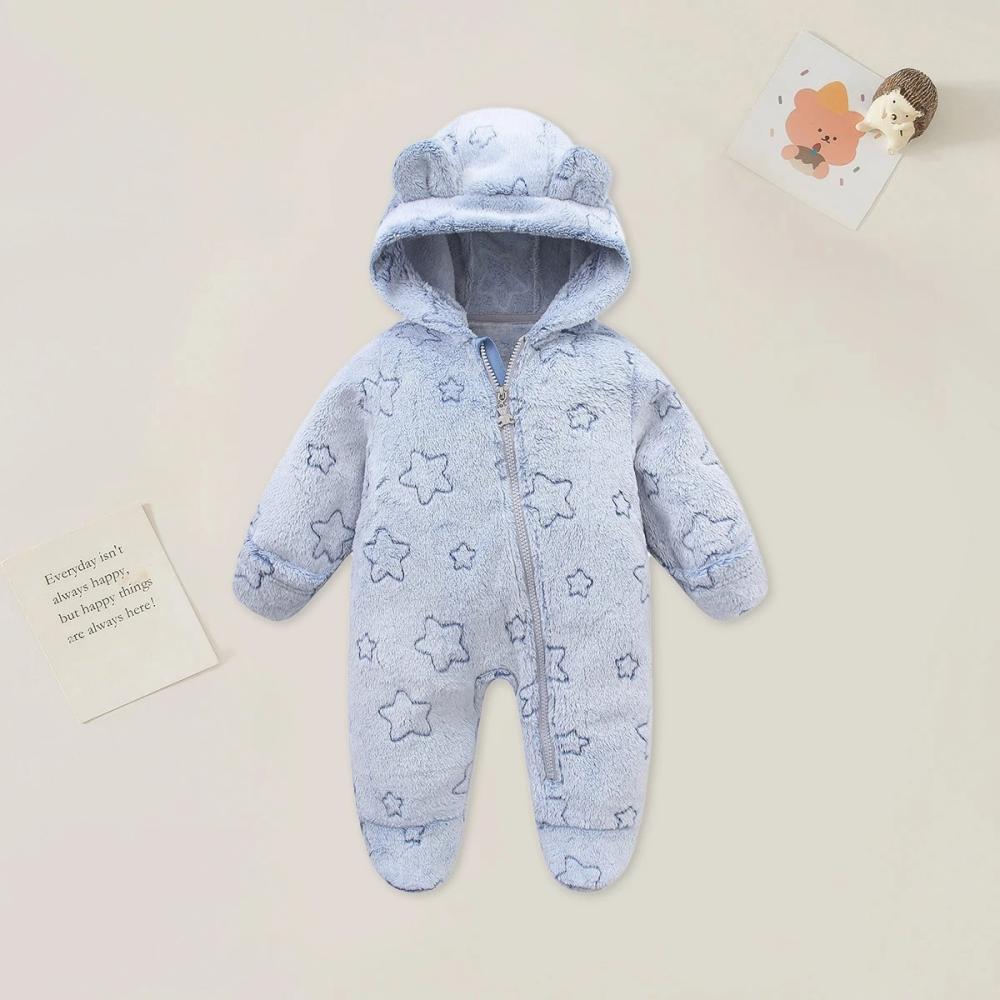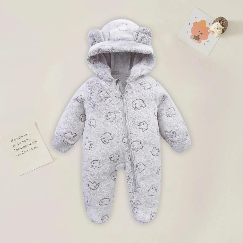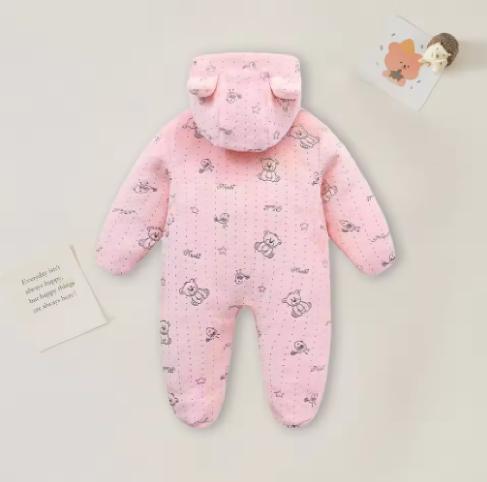 رومبير اطفال رضع دافئة من عمر 0-12 شهرًا، مصنوع من الفانيلا الناعمة، مناسب لفصلي الخريف والشتاء. يتميز بتصميم كرتوني لطيف مع قبعة مزودة بأذنين تضيف لمسة جذابة. يوفر الدفء والراحة لطفلك في الأجواء الباردة مع سهولة ارتداء وخلع البذلة.